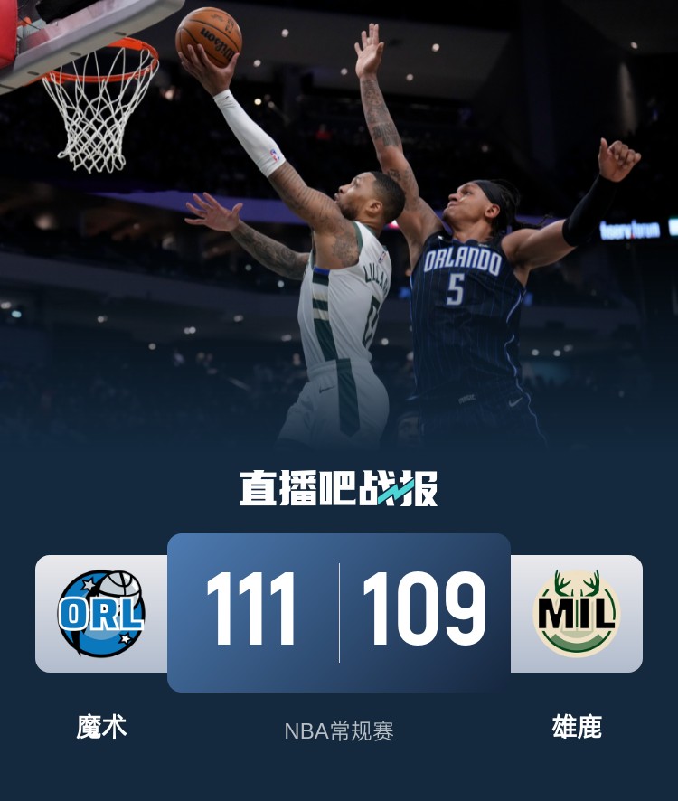 班凯罗29+6 字母哥37+11 利拉德失绝杀 魔术终结雄鹿4连胜