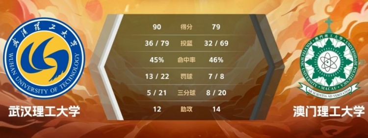 澳门理工:茹鹏宇17分6板5助,何浩然15分8板3助,王昊桐15分4板3助3帽,黃偕進14分4板2助,何浩銘6分