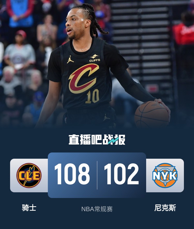 加兰26+13 斯特鲁斯19分 布伦森27分 骑士23分逆转横扫尼克斯