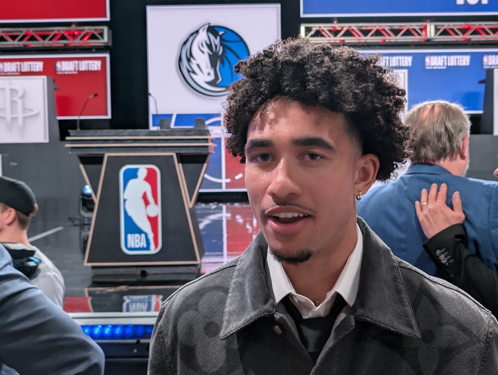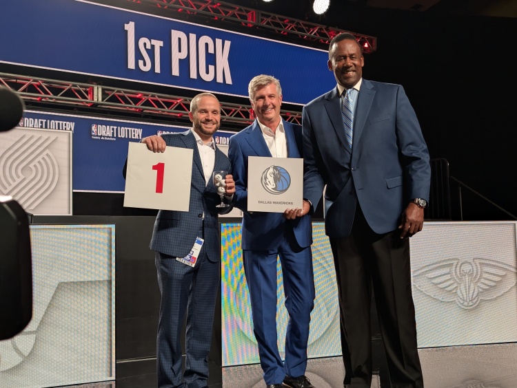 中奖的独行侠甚至没有派他们的GM尼科-哈里森到场,因为他们赢得状元签的概率只有1.8%。相反,球队的副总经理马特-里卡迪和前独行侠全明星罗兰多-布莱克曼在台上合影留念。