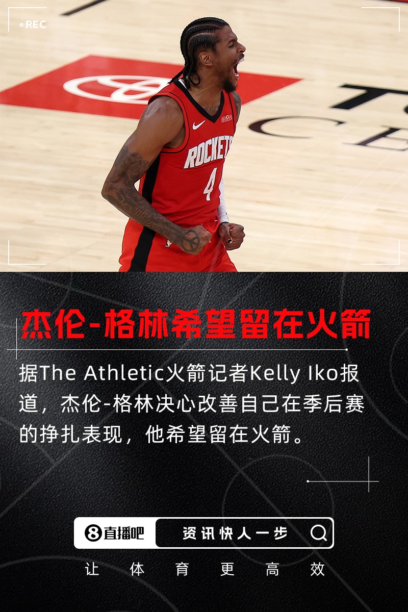 3年1.05亿!杰伦-格林决心改善在季后赛的挣扎表现 希望留在火箭