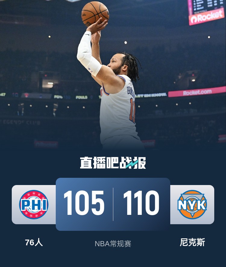布伦森34+7 乔治下半场17分 马克西32中12 尼克斯送76人9连败