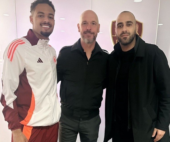在当地时间本周一上午,滕哈赫又和自己的经纪人一起来到罗马俱乐部的特里戈里亚训练基地参观,并受到了罗马俱乐部的热情接待。滕哈赫还和罗马后卫伦施合影,伦施曾和滕哈赫在阿贾克斯共事,他在冬季转会期刚加盟罗马。