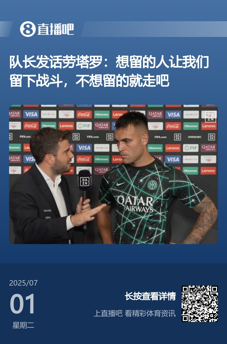 这是一种对外的处理方式,直到劳塔罗掀了桌子,齐沃对此表示,“他的介入方式很激烈,但我想说的也是一样,我们必须齐心朝着同一个方向。”